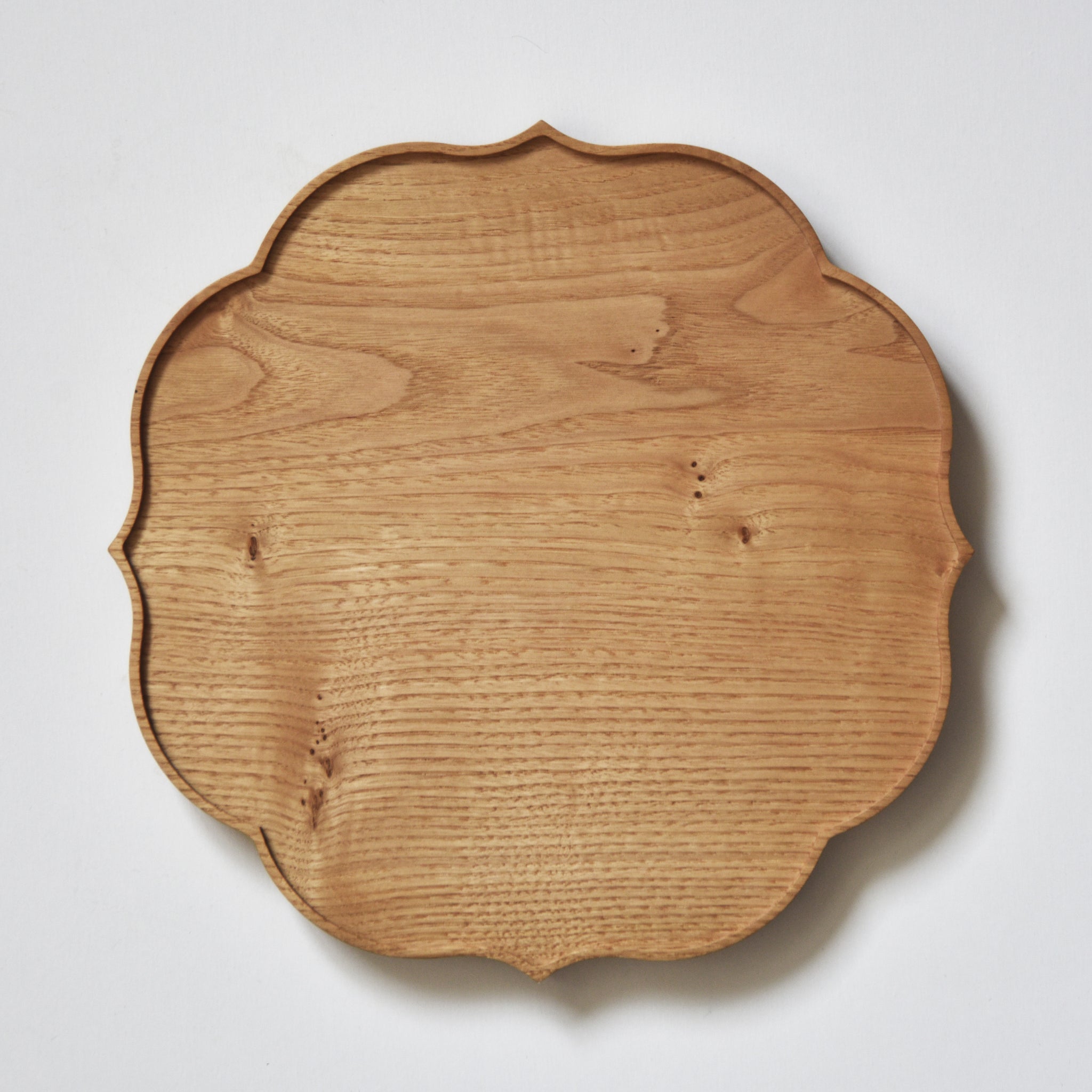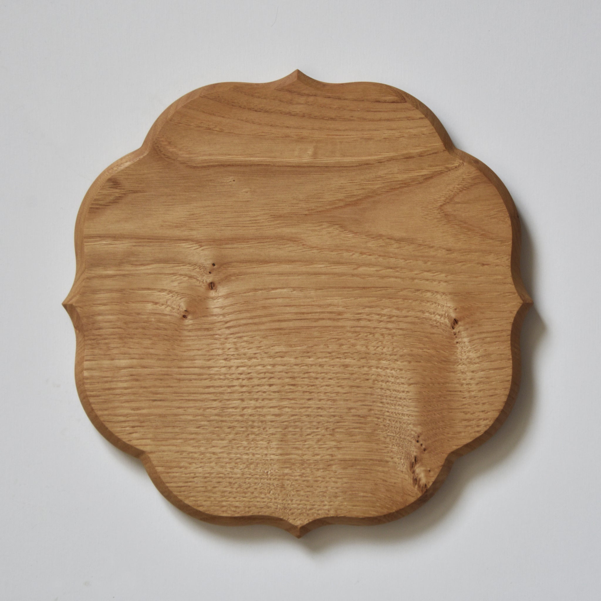 稜花と呼ばれる伝統的な形に仕上げた折敷(おしき)です。東北の木工房で国産の栗の無垢材を削り出した後、一枚一枚手作業で仕上げております。